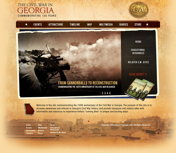 Georgia commemorated the 150 year anniversary of the cival war with a look back at events, diaries, timeline and galleries to educate and increase awareness and interest in Georgia's rich civil war historic sites.