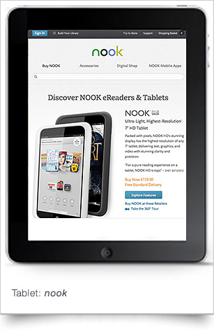 The site introduced nook to the international market, beginning in the UK with the promise of store fronts and additional locations to follow. The debut of the new full-color touch screen tablets included an fluid, engaging catalog of digital books, magazines, newspapers, films and computer games.