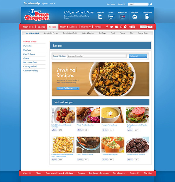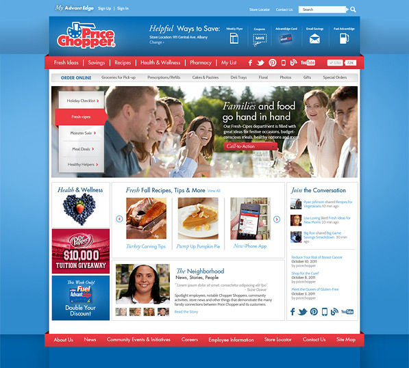 The campaign was introduced first through the website, quickly followed by social, mobile, crm and tradtional media. Social channels were integrated into the website to allow users to view, rate and share recipes and coupons, get tips on choosing produce, healthy eating, special dietary needs, and cooking techniques. Other features included an integrated shopping list, customized coupons, recipes, and online ordering of bakery and deli goods.