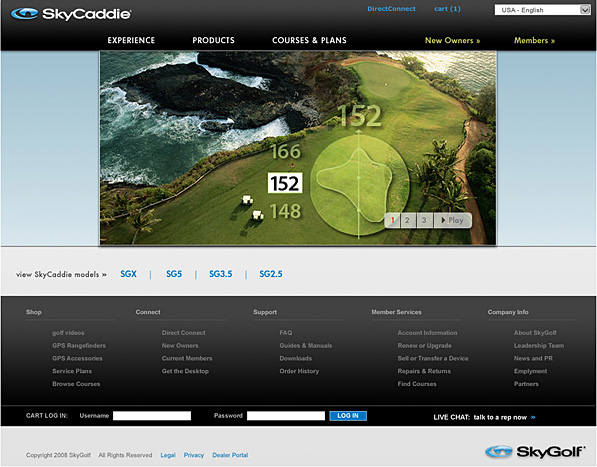 The challenge of the website was to inspire and educate, showcasing the power and simplicity of the SkyGolf products.