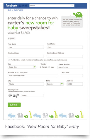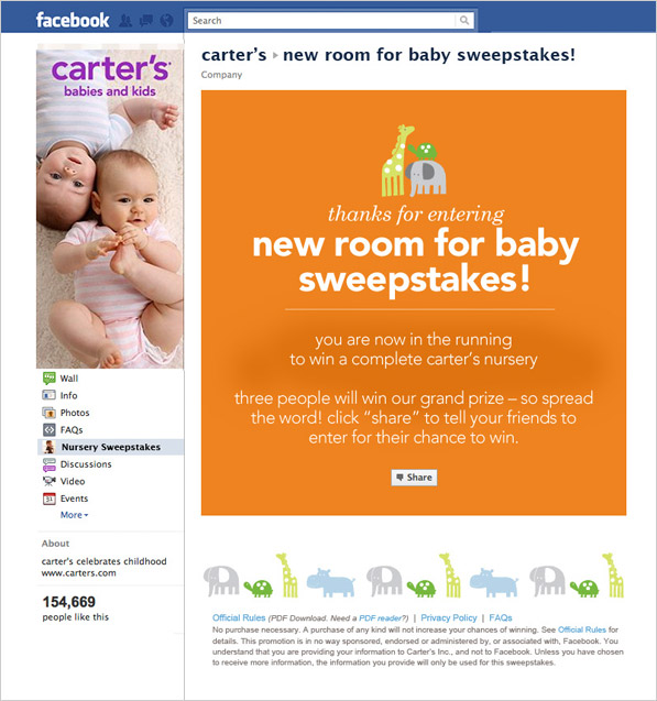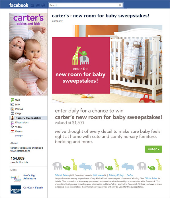 The objective of the "New Room for Baby Sweepstakes" was fan acquisition, fostering intrigue for the brand new collection and encouraging fans to share the experience and their favorite room theme