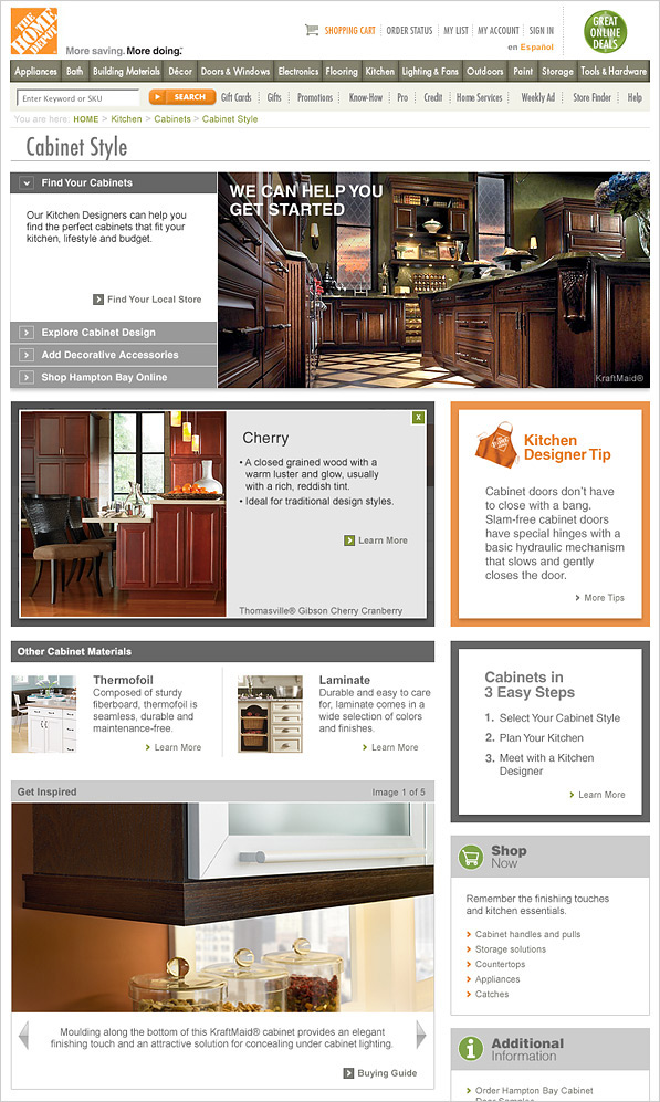The redesign for The Home Depot involved creation of an interface design that inspires, educates and engages consumers.